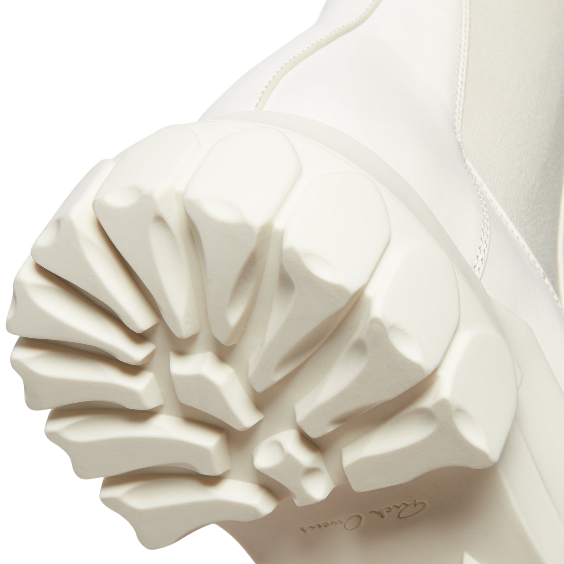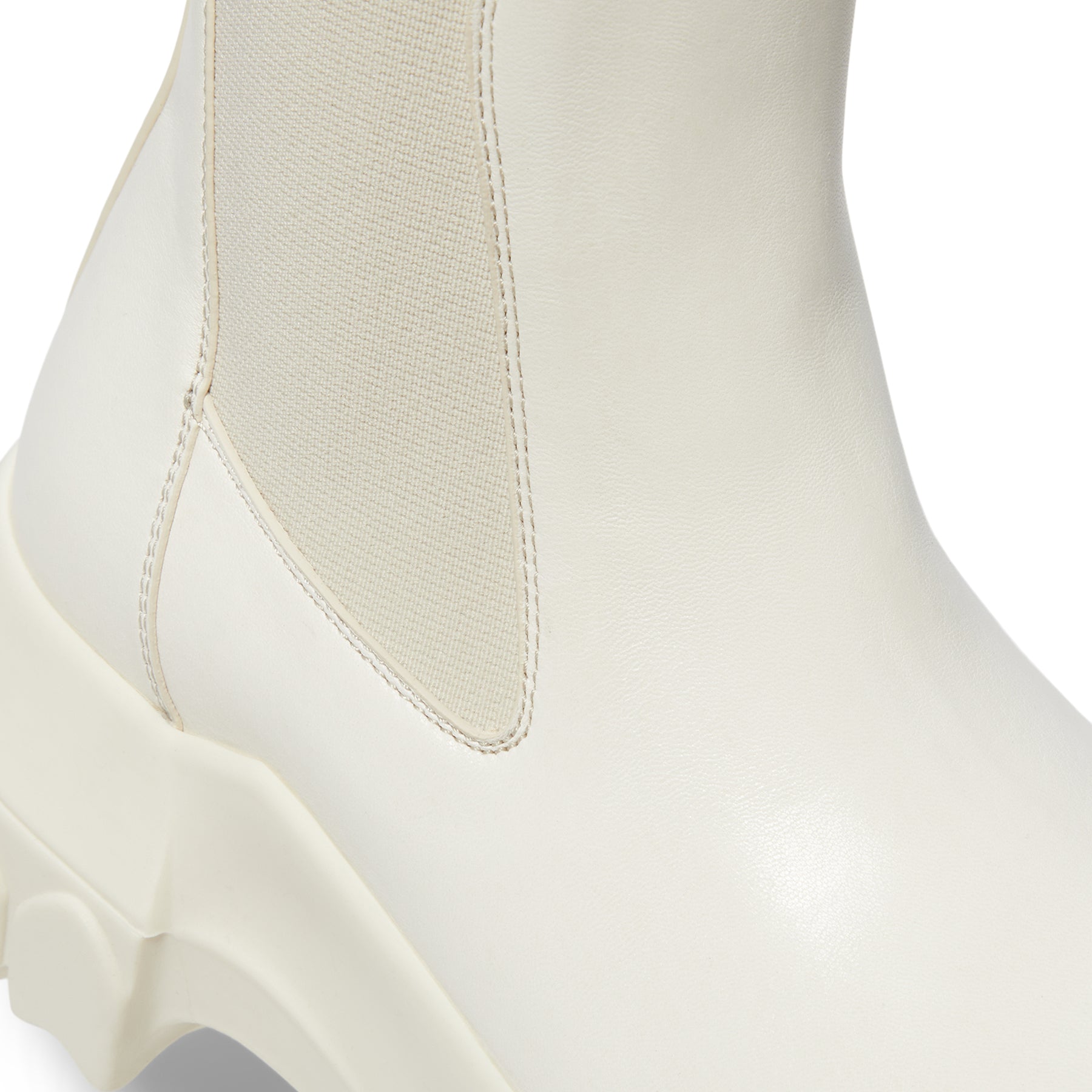 These Beatle Bozo tractors rise above the ankle and showcase geometric side panels crafted from stretch elastic. They feature an angular heel counter with detailed top stitching, a back loop pull tab, and a rounded Bozo toe. The boots are built on a durable tractor sole. Made from medium-weight albino lamb leather, this material offers a natural, waxy texture.